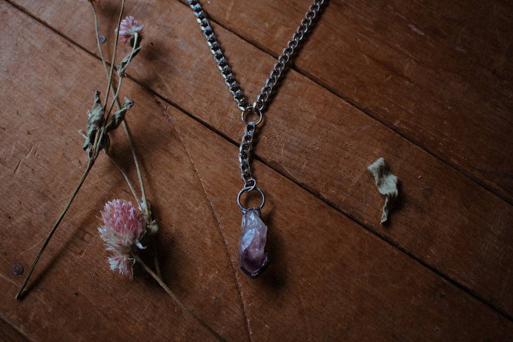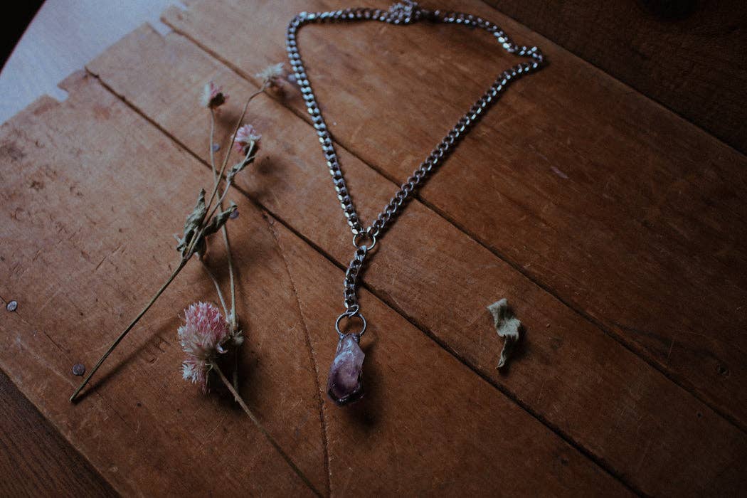 The Emperor Necklace weaves together strength, protection, and mysticism. At its centre sits a raw, faceted amethyst, a stone honoured for centuries for its intuitive and protective qualities, as well as its deep spiritual power.