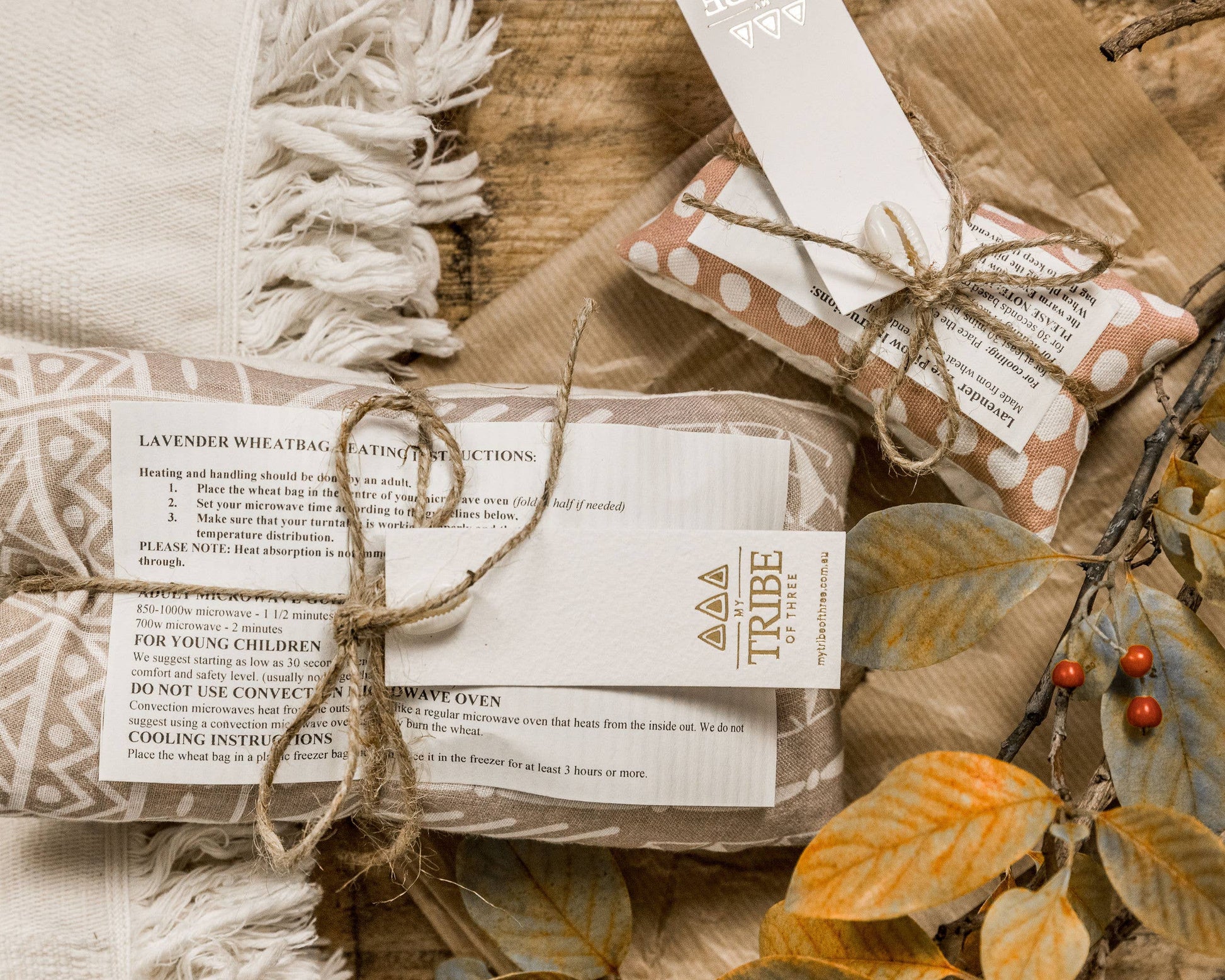 A soothing blend of organic Australian lavender and wheat for relaxation, muscular relief, relief from period pain or to just keep you warm in winter or cool in summer. These organic lavender wheat packs are the perfect size to put anywhere on your body ~ across your shoulders, over your tummy or around lower back.